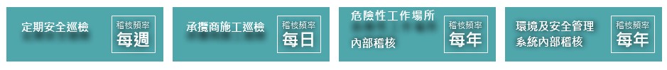 內部檢查: 員工依規定執行每日、月、年之定期檢查及設備保養。