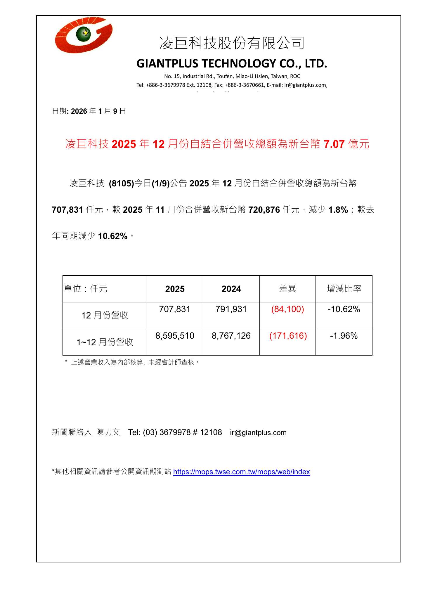 凌巨科技2025年12月份合併營收為新台幣7.07億.pdf